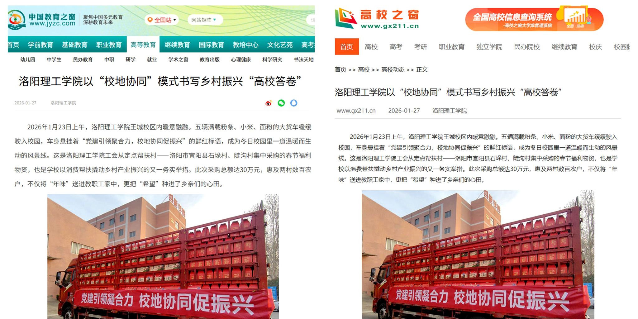 中国教育之窗、高校之窗报道我校从帮扶村集中采购春节福利物资撬动乡村产业振兴