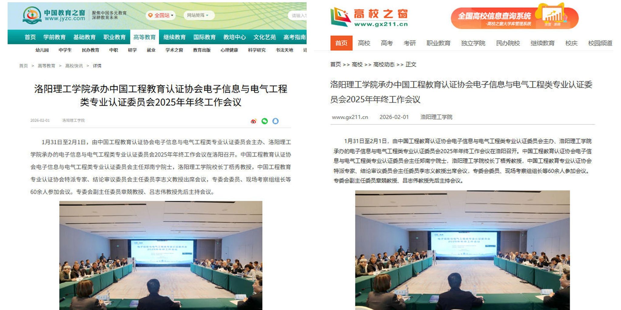 中国教育之窗、高校之窗报道我校承办中国工程教育认证协会电子信息与电气工程类专业认证委员会2025年年终工作会议