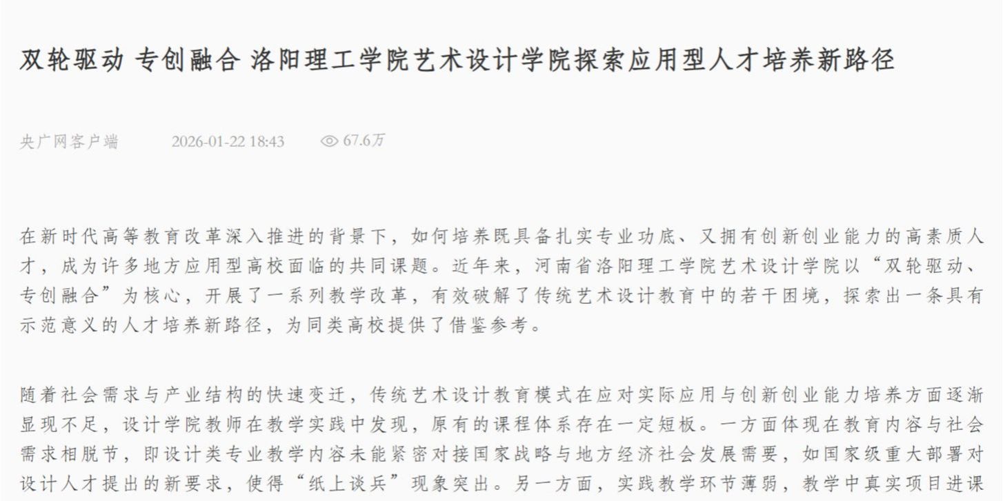 央广网报道我校艺术设计学院探索应用型人才培养新路径