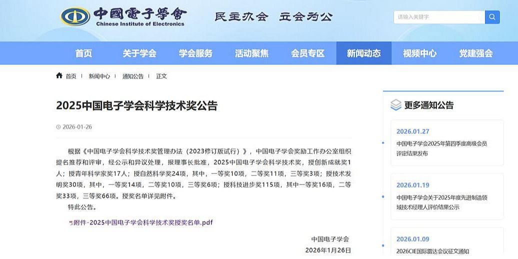 我校荣获2025中国电子学会科技进步奖