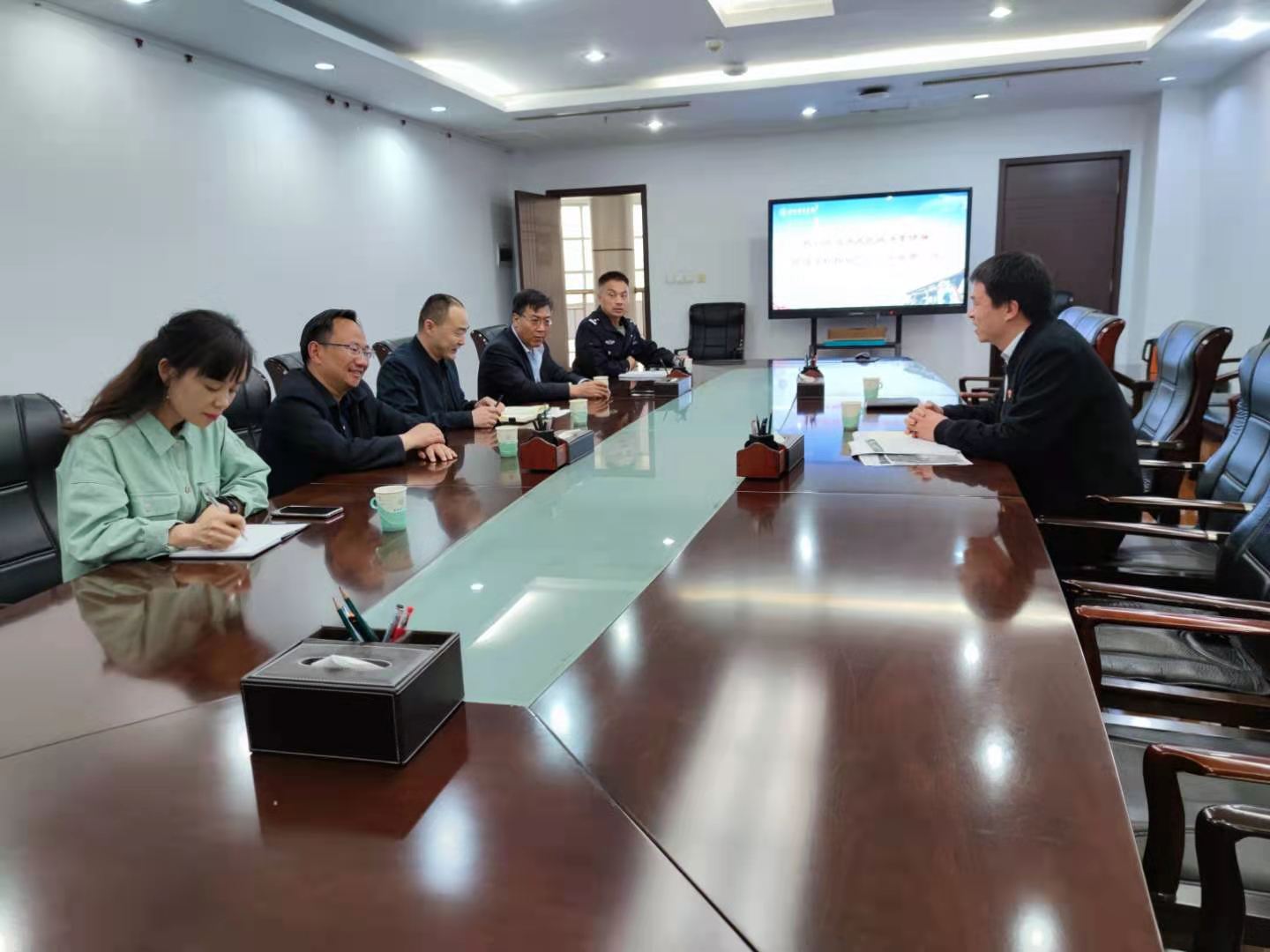 保卫处李亚逊对张晓陆、何新跃一行来校调研表示欢迎,并就我校开学以来防诈宣传教育活动开展情况做了介绍。