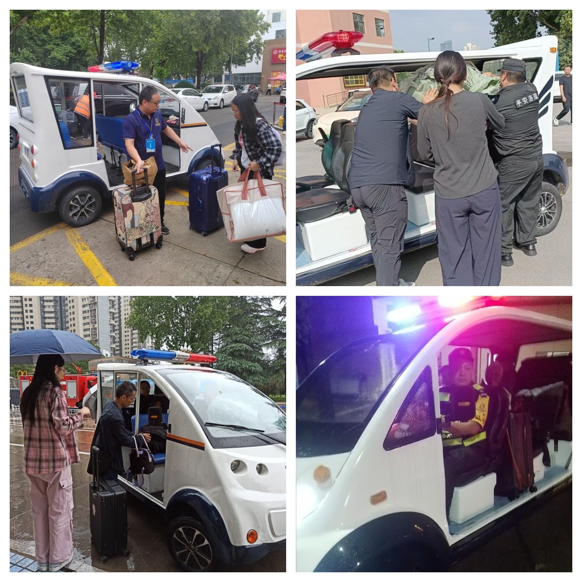 暖心服务,守护师生安全。新生报到期间,政保部党支部在各校区门口设“党员志愿服务站”,为新生及家长提供各类咨询、求助服务。党员同志坚守一线,承担安保职责,还用巡逻车帮新生运送行李,传递学校温暖。夜间加强迎新区域和宿舍楼周边巡逻,及时解决学生需求,巡逻车成为流动的志愿安全服务站。