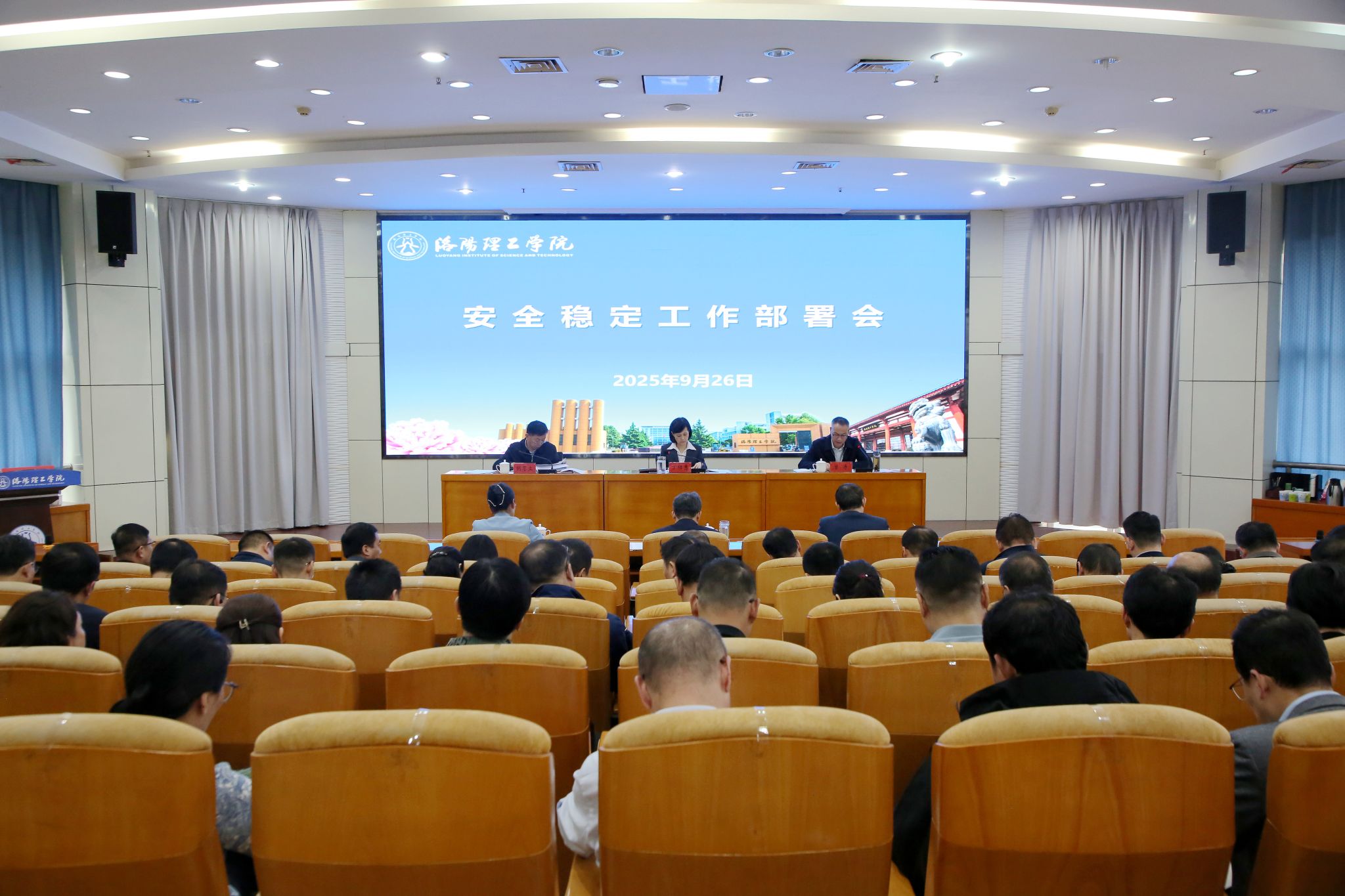 9月26日下午,我校在王城校区办公楼二楼报告厅召开国庆假期安全稳定工作部署会。校领导丁梧秀、曾涛、胡恩立、王新武、冯超、李传锋出席会议,相关职能部门负责人和二级学院党政负责人、副书记参加会议。会议由校长丁梧秀主持。