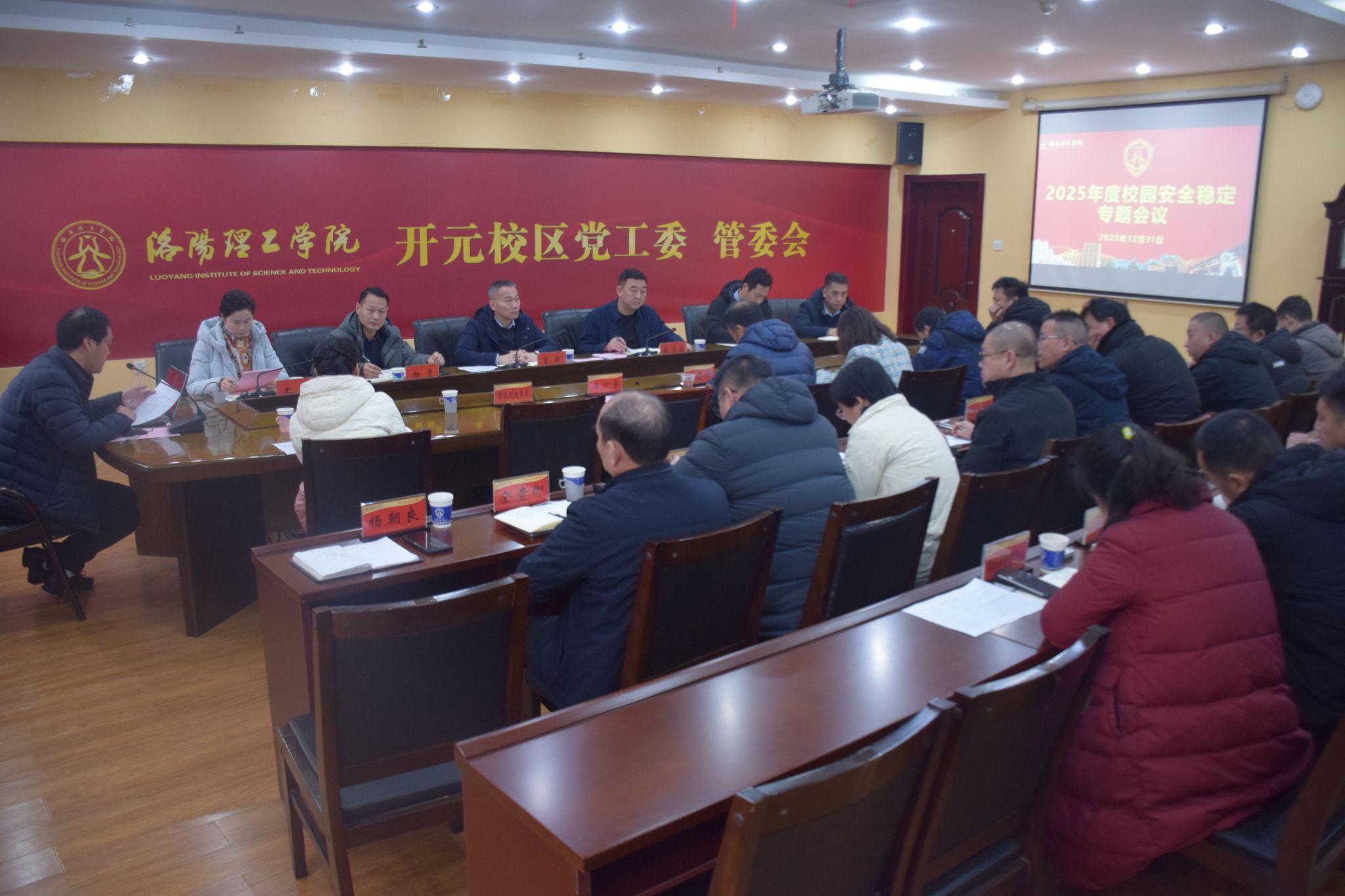 12月31日上午,洛阳理工学院2025年度校园安全稳定专题会议在开元校区图书馆307会议室召开。校党委副书记、工会主席曾涛出席会议并讲话,党委宣传部、学生工作部、政治保卫部、后勤保障处、开元校区管委会、一站式学生工作社区等相关单位及部门负责人,各二级学院党委副书记参加会议。