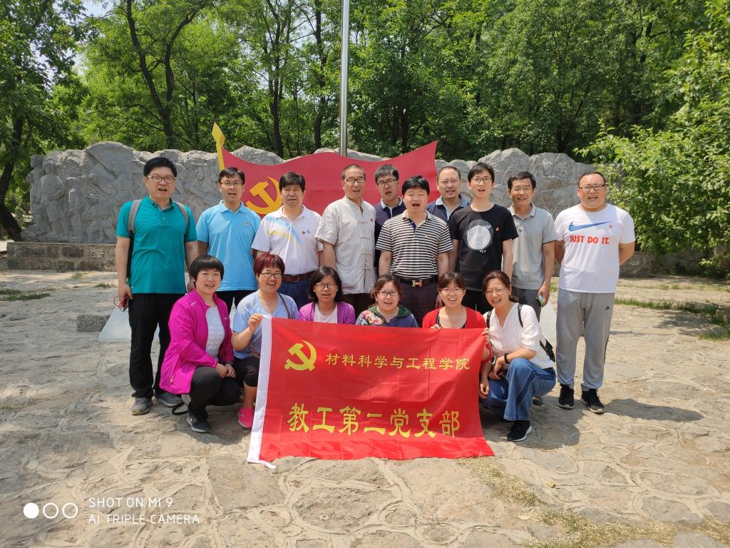 为庆祝中国共产党建党98周年,加强爱国主义教育,2019年5月25日,材料科学与工程学院教工第二党支部组织全体党员赴中原豫西抗日战争纪念园开展“不忘初心、牢记使命”主题党日活动。参加此次活动的还有思想先进、积极向党组织靠拢的材料成型及控制工程系教师。此次活动共有两项内容,一是在豫西抗日纪念园内,材料科学与工程学院党委书记吴武伟同志带领全体人员在英烈纪念广场党旗下宣入党誓词。目的是让党员同志们重温入党誓词,不忘初心,砥砺前行。二是由讲解员带领党员们参观了皮定均抗日工作旧址、包括抗日民主政府、独立团、特务连、战地医院等旧址。