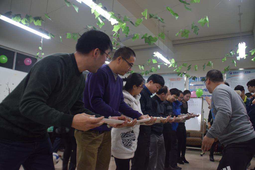 联欢会分为“挑战NO.1”和包饺子两个环节。挑战项目分设激情节拍、不倒森林、珠行万里、击鼓颠球等。在比赛过程中,教职工们热情高涨,奋力应战,每个教职工都积极投入到丰富多彩的趣味活动之中。比赛紧张激烈,精彩纷呈,游戏活动高潮迭起,欢声笑语不断。在包饺子环节,各位老师各显身手,其乐融融。娴熟快速的手法、专注开心的神情,不一会儿,月牙饺、锁边饺、柳叶饺子等各式各样漂亮的饺子摆满大大小小的盘子。随后,饺子包好后便立即下锅,很快热气腾腾的饺子便被端上桌,老师们纷纷表示很有家的氛围。