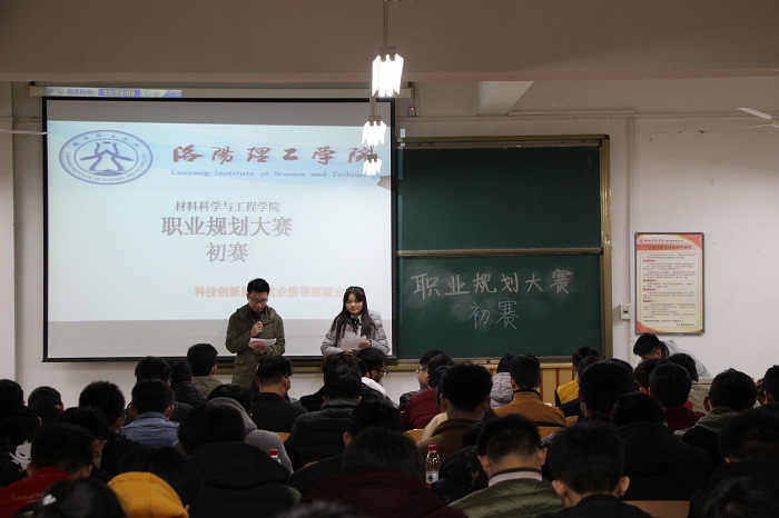 材料科学与工程学院17届职业生涯规划大赛初赛于12月10日下午在EE301如期举行。材料学院团委副书记刘子亨、宗乐等团委学生会部门干部担任评委。参赛人员主要是16级、17级的学生以及近百名学生观看。