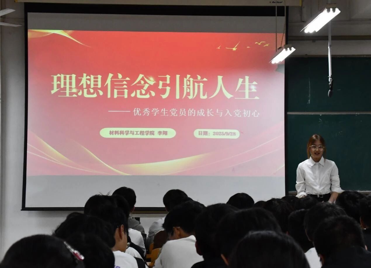 为落实学校关于2025级新生党的基本知识教育工作要求,9月28日下午,我院在EE301举办2025级新生党的基本知识教育系列活动第二场——优秀学生党员分享会。本次活动邀请大三优秀学生党员李翔主讲,以“理想信念引航人生——我的成长与入党初心”为题,结合自身经历,与2025级新生分享从迷茫到坚定的成长历程及对入党初心的深刻感悟。