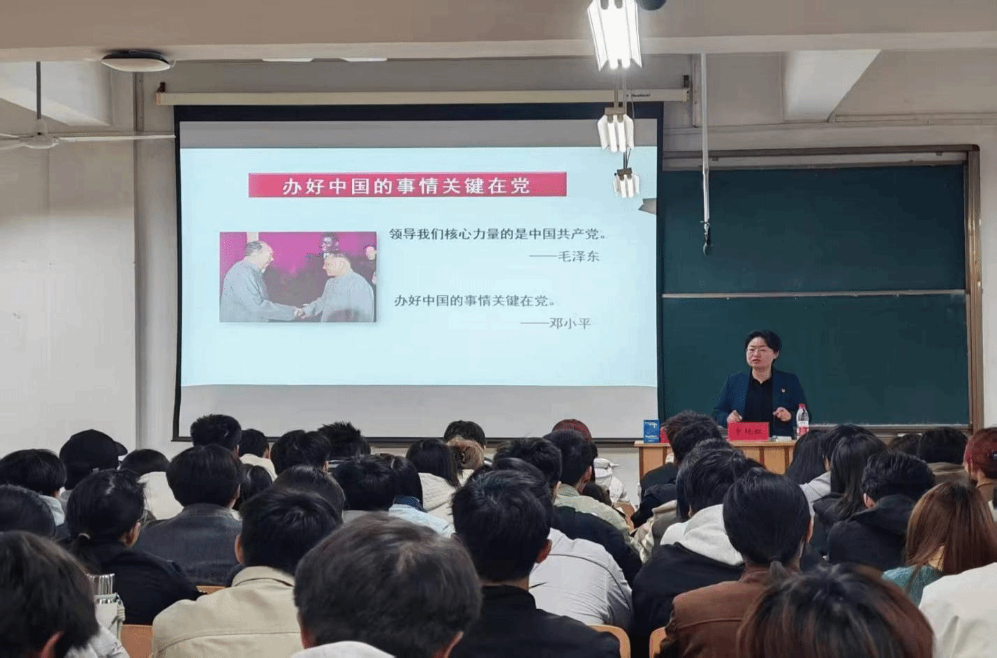 申艳红引用邓小平同志“办好中国的事情,关键在党”的重要论述,结合党的二十大报告中“坚持和加强党的全面领导”的原则要求,通过案例分析与理论解读,深入阐释党的自身建设的重要意义。帮助同学们认清党作为中国特色社会主义事业领导核心、民族复兴根本保证的定位,引导大家跳出“个人视角”深刻理解党的领导的必要性,进一步强化政治站位,为向党组织靠拢筑牢思想根基。