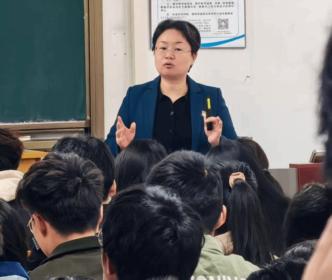 在党课核心环节,申艳红聚焦党的组织原则与纪律,以民主集中制为核心,从形成脉络、核心原则、重要意义三个维度展开深入剖析。她系统梳理民主集中制的百年发展历程,详细阐释“民主基础上的集中和集中指导下的民主相结合”的核心内涵,列举制度执行的具体要求;同时强调这一制度在保障党内民主、强化党的集中统一领导、支撑党的纪律建设中的关键作用,并着重提醒同学们“党的纪律是党的生命线”。此前对民主集中制仅停留在“记名词”层面的同学们,通过此次讲解明晰了制度的深层内涵与实践价值,组织观念和规则意识得到显著提升。