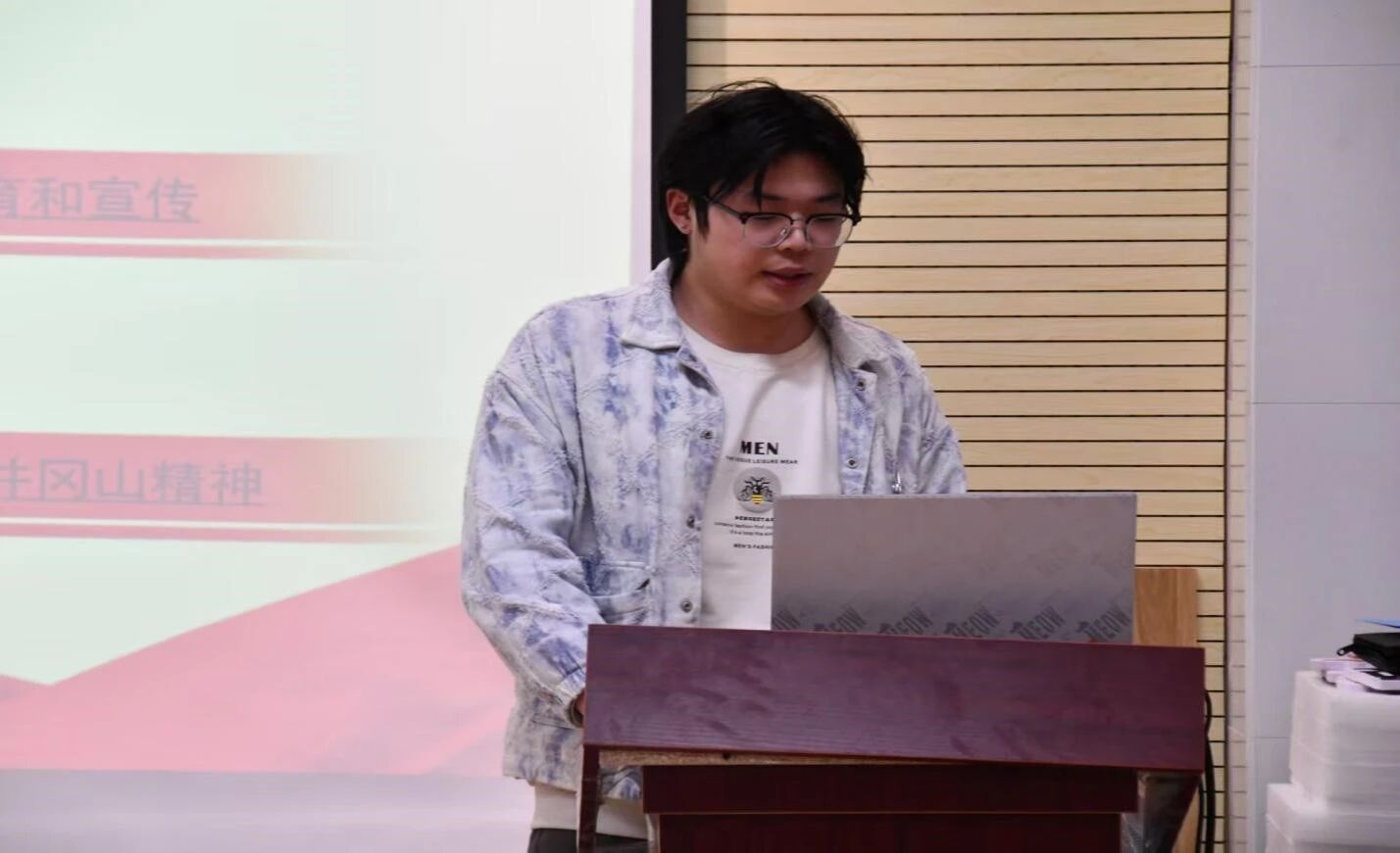 2025年11月13日,何苏洋同学以“学习红船精神”为主题开展宣讲。他从嘉兴南湖的红船说起,生动讲述了中国共产党在民族危难之际诞生的伟大瞬间,深入解读了红船精神蕴含的“首创勇气、奋斗信念、奉献初心”。何苏洋呼吁同学们将红船精神作为精神航标,在人生征程中坚定理想、永葆激情,用创新开辟未来,以实干铸就梦想,让青春在为祖国和人民的奉献中焕发绚丽光彩。