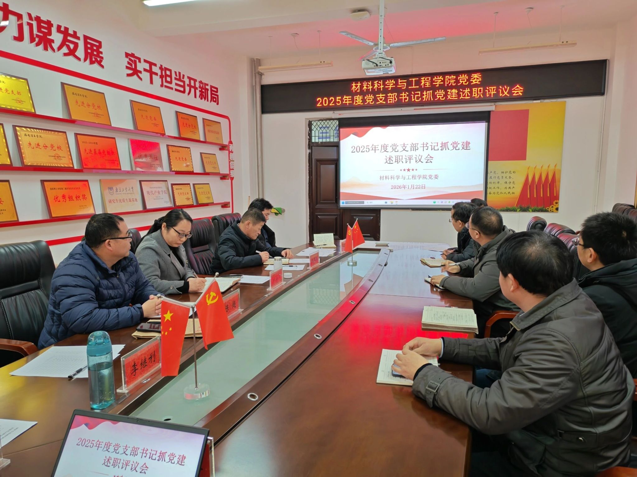 为深入学习贯彻习近平新时代中国特色社会主义思想,全面落实党的二十大和二十届历次全会精神,进一步夯实基层党建基础,压实管党治党政治责任,1月22日下午,材料科学与工程学院党委在ES207会议室组织召开2025年度基层党支部书记抓党建工作述职评议考核会。学院党委委员、各师生党支部书记及党员代表参加会议,会议由学院党委副书记陈超主持。