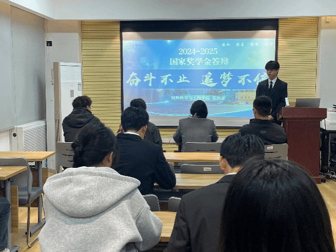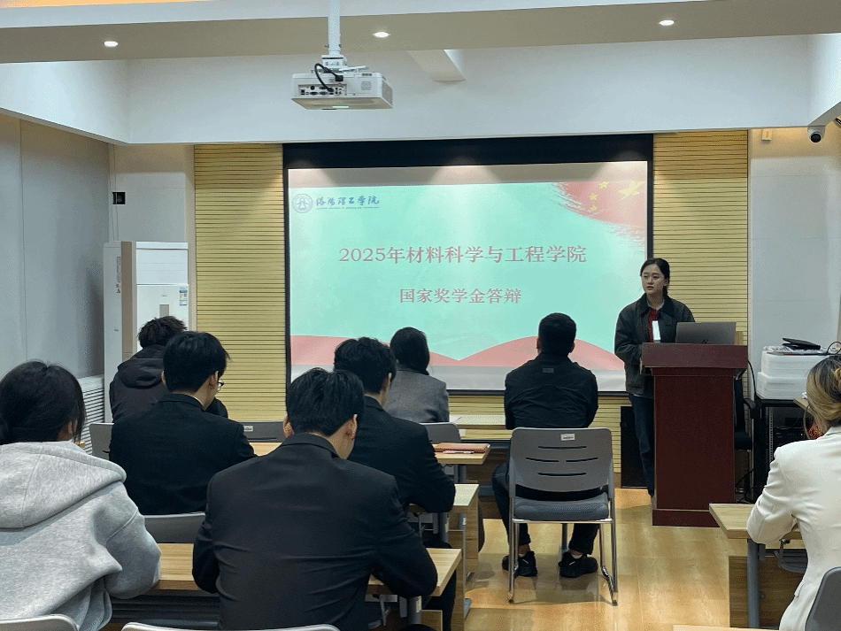2025年10月10日下午,洛阳理工学院材料科学与工程学院在致实书院宣讲室进行了2024-2025学年国家奖学金的答辩会。学院辅导员李千慧、员星、曾坤及石冬雷共同组成评审席,对通过国家奖学金前期资格审查的8名同学的答辩进行综合评定,现场气氛庄重而热烈。