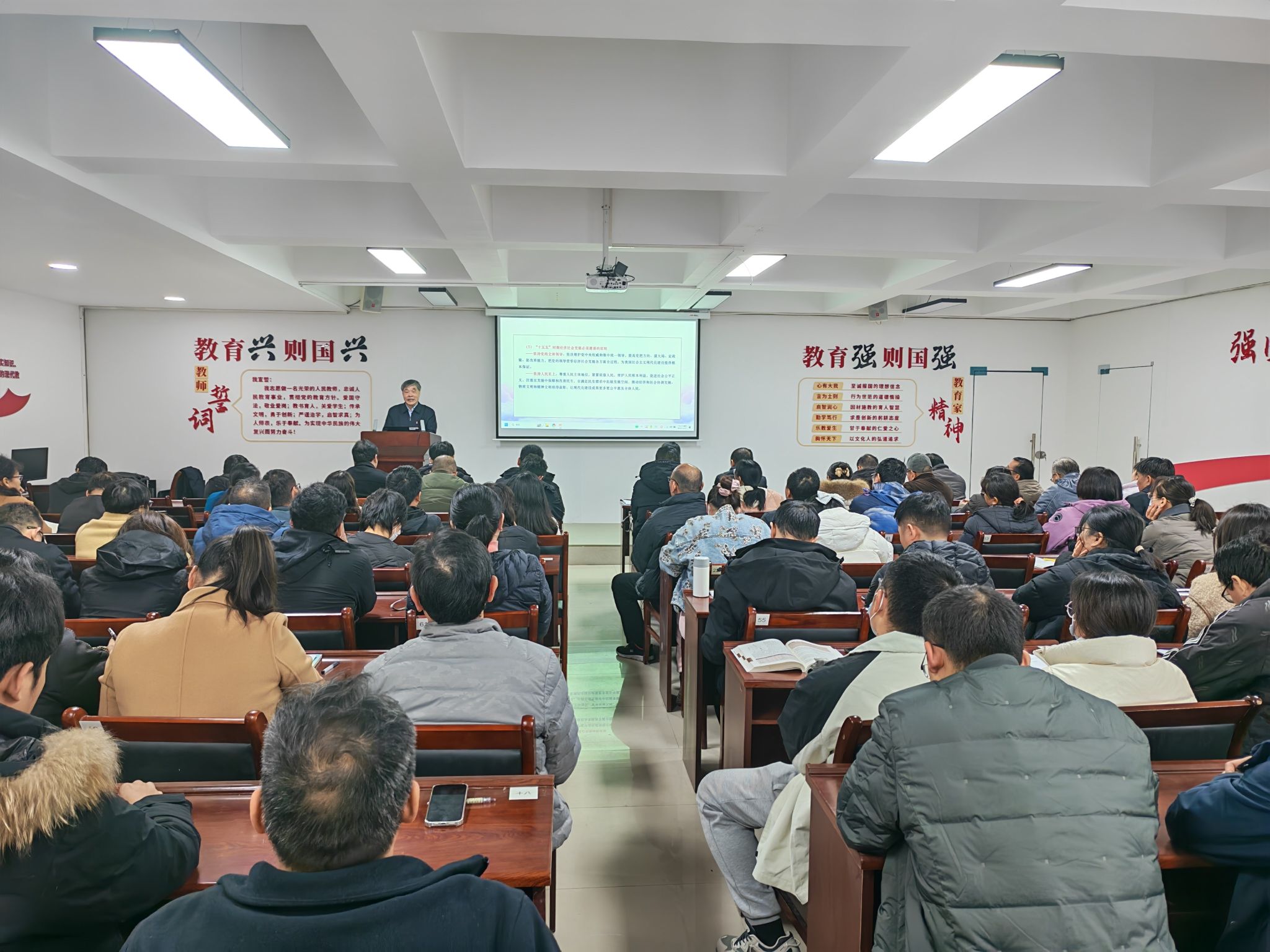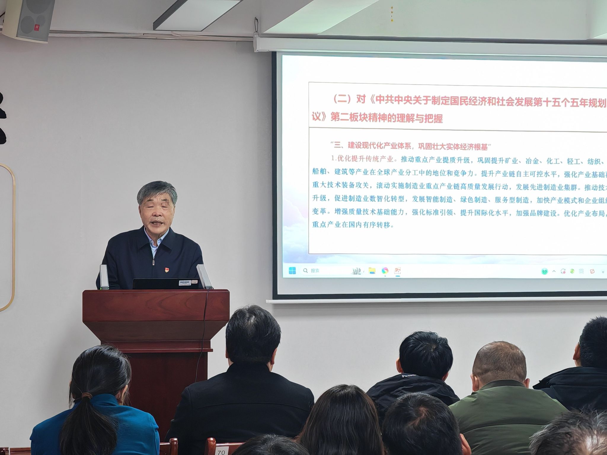 宣讲会上,白选杰教授紧扣党的二十届四中全会精神实质,从“我国五年计划及五年规划制度”、“十四五”期间我国经济社会建设取得的辉煌成就”、“对‘十五五’规划的理解与把握”、“把学习贯彻党的二十届四中全会精神引向深入应注意的若干问题”等方面,进行了系统详实、深入浅出的宣讲。宣讲报告主题鲜明、内涵丰富、逻辑严密、案例生动,具有很强的政治性、理论性和指导性。