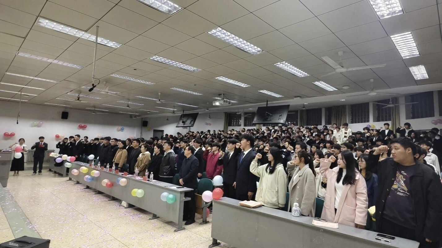 学生团委副书记李新宝带领全体新一届团委学生会成员进行了就职宣誓,承诺将以饱满的热情投入学生工作中。