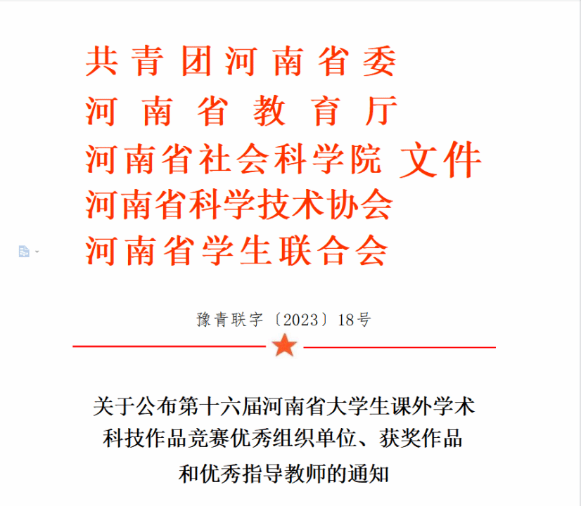 近日,第十六届“挑战杯”河南省大学生课外学术科技作品竞赛终审决赛在华北水利水电大学圆满落幕。在学院团委的积极筹备与精心组织下,材料学院师生积极参与,认真备赛。最终,经过专家问辩和现场评审,材料学院荣获省级一等奖1项、省级二等奖1项、省级三等奖3项的优异成绩。此外,王黎、董宾宾、殷超凡三位老师获评大赛优秀指导教师,洛阳理工学院第九次捧得大赛“优胜杯”!