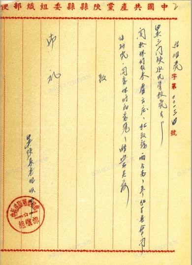 (1956年中国共产党陕县县委批准成立学校党支部的发文)
