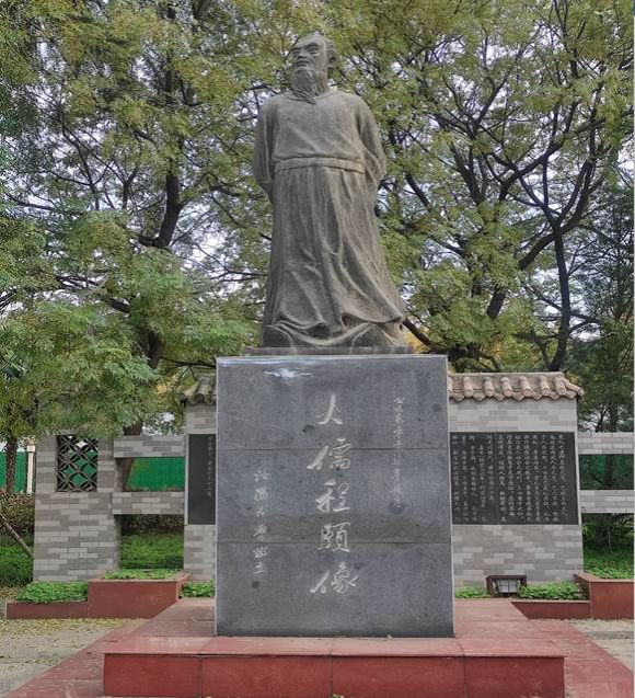 儒学广场南端,矗立着程颢铜像。它于2003年2月由汤恩佳先生捐赠,连座高约5.8米。