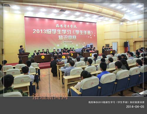 4月3日晚,我院在开元校区图书馆四楼学术报告厅举行2013级新生学习《学生手册》知识竞赛决赛,参加此次活动的有院学工部、团委负责人和各系(部)党委书记、学工办主任、团委书记。, 此次决赛共有六个系部的代表队参与,共设选手必答、团队抢答、风险闯关三个环节。每个环节中各代表队竞争激烈,现场观众也积极参与互动为比赛增添了氛围。最终我系获得第三名的好成绩。