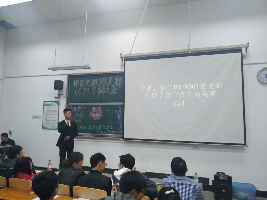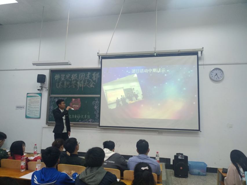 晚上七点,述职答辩大会拉开了帷幕。答辩过程中,各团支部代表进行了PPT展示,对团支部建设、常规工作展开、团日活动以及志愿服务活动等进行了总结。这不仅是工作的总结,同时也展示了团支部的风采。