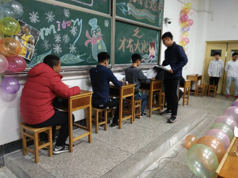 晚上7点,一首欢快的开场曲《别找我麻烦》拉开了今天的文化大比拼活动的序幕。在让人笑翻天的才艺比拼中,名为《考场风云》的小品赢得了观众的阵阵掌声。人才招聘会上表演者能言善辩的口才,考场上学生的小动作,配上搞笑的动作,实在精彩。才艺大比拼在一首《乌兰巴托的夜》中谢幕。《我的大学生活中》从各个角度展示了纯真质朴的大学生活,夺得第三名,《考场风云》以幽默搞笑的对话,获得第二名,《葫芦娃》活泼夸张的动作荣获第一。《讨债》以出色的动作,大胆的语言,获得优秀奖。让我们热烈祝贺同学们们精彩的演出。在颁奖后活动圆满结束。