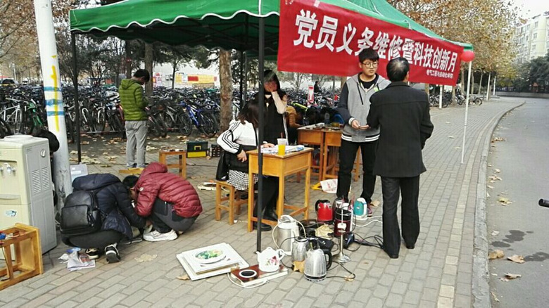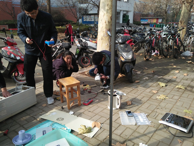 12月3日,电气工程与自动化学院党员携家电维修小组共30余人来到王城校区的绿园和馨园,进行义务维修活动。