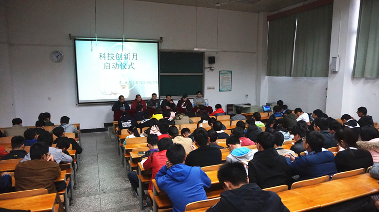 12月8日,电气工程与自动化学院在教学楼D1举办了科技创新月启动仪式,我院副院长陈文清、自动化系主任姚慧琳,董红政老师和张伟民老师参加了此次启动仪式,共150余名同学到场观看。