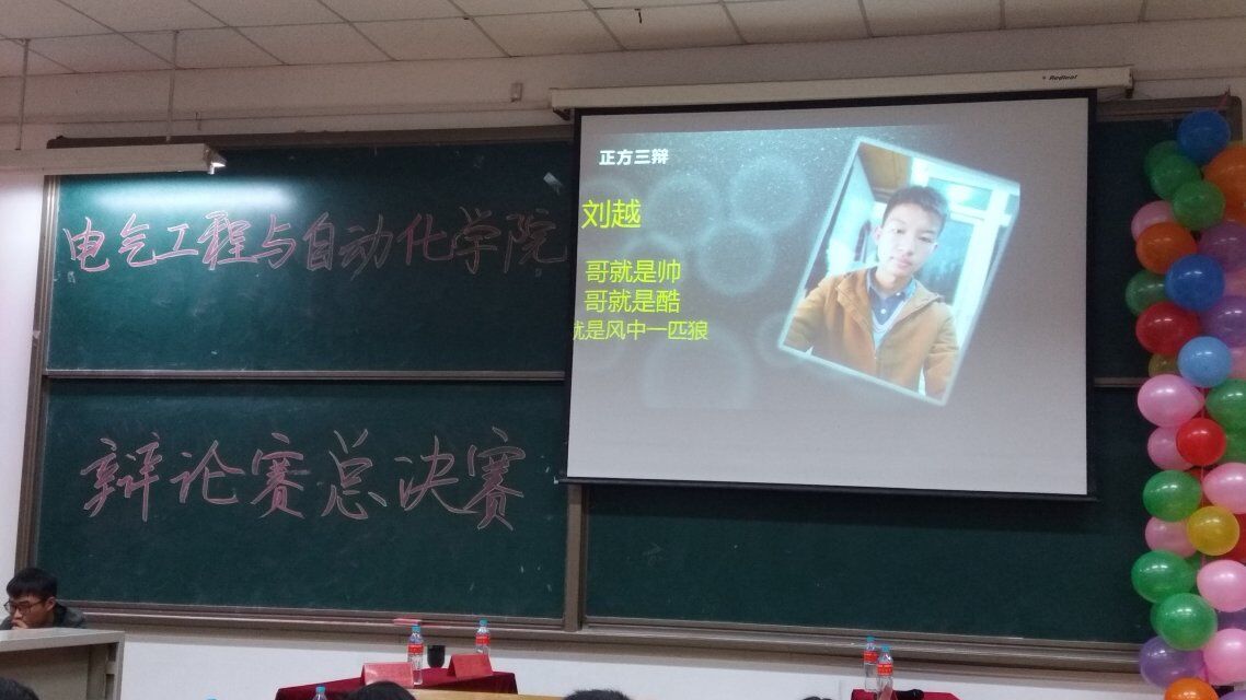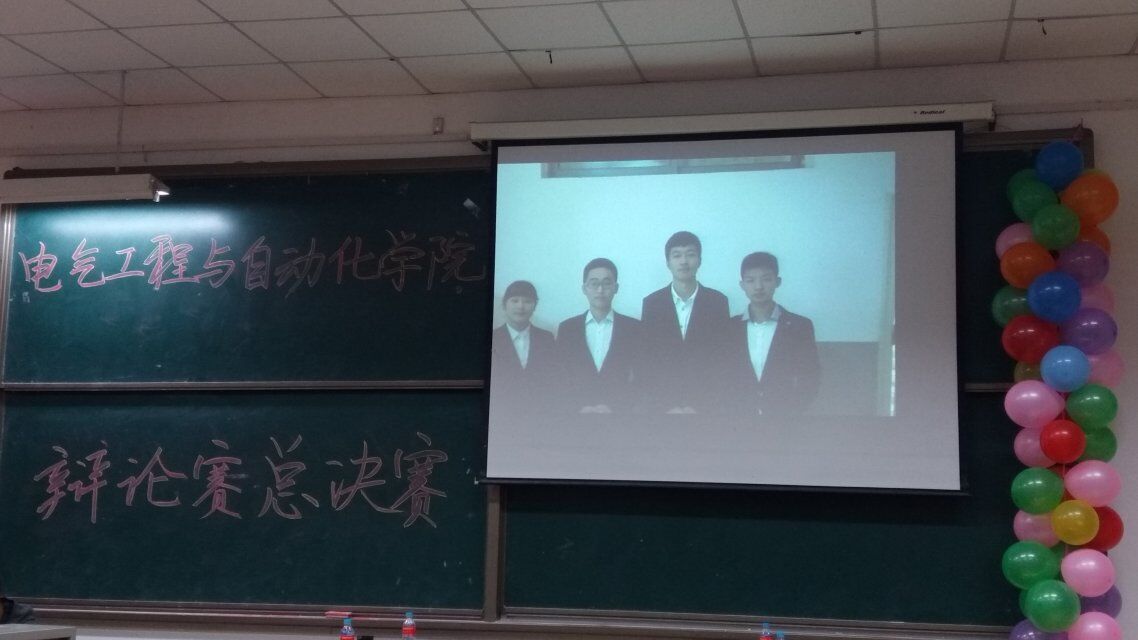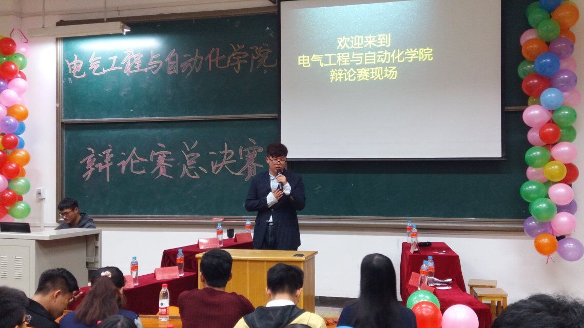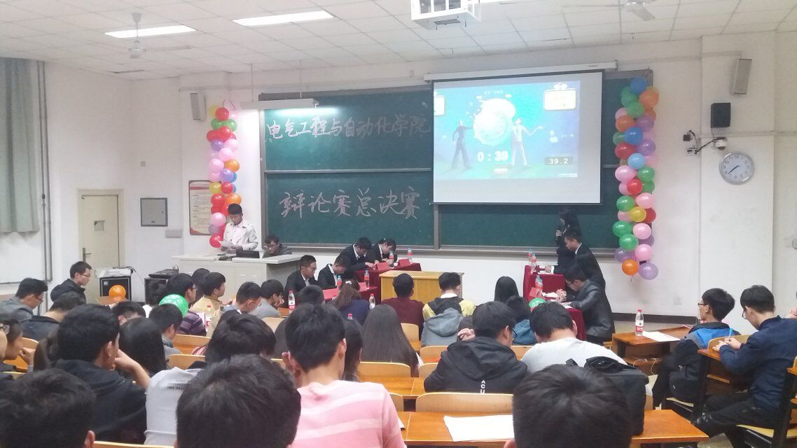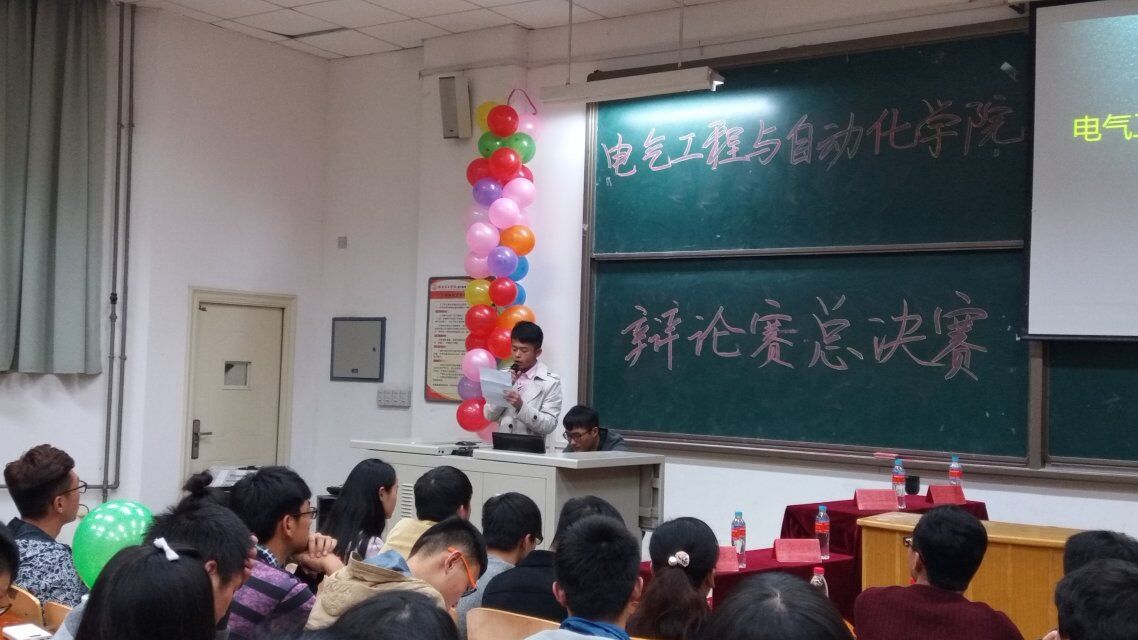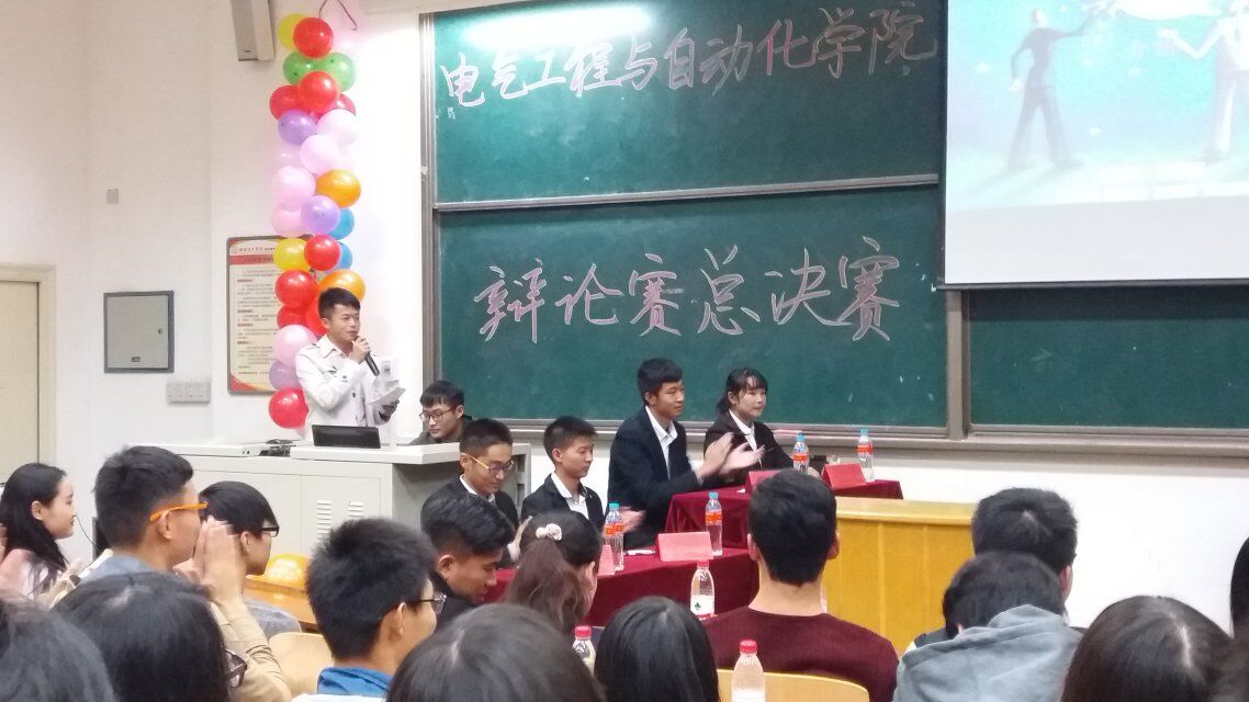 10月27日,电气工程与自动化学院在师范楼108教室举办了辩论赛决赛,我院团委副书记张斐然老师出席了比赛,校学习部副部和往届最佳辩手担任此次比赛的评委,电气工程与自动化学院上次晋级复赛的八名辩手参加了此次比赛,共200余名大一新生观看了比赛。
