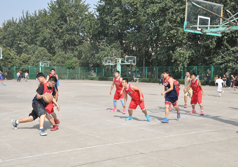 中午12点30分所有比赛球队到达比赛场地进行热身运动,准备接下来的比赛。此次比赛与初赛不同,所有球队混合进行抽签。比赛开始,有小石榴们与大二大三的学长比拼,也有强者之间的对抗,一个完美的三分球,又一个成功的上篮,场下的啦啦队也扯破了嗓子,为自己的队伍加油。比赛过程中各队的队员不断进球,即使面对强者也不甘示弱,拼出了自己的实力。虽然每个队都会有失误,但他们并不会因为一点小挫折而倒下,大家打的热火朝天,一个个大汗淋漓,比赛堪称精彩绝伦。比赛结束后对战双方本着“友谊第一,比赛第二”的原则握手,篮球比赛复赛在一阵阵欢呼声中结束。