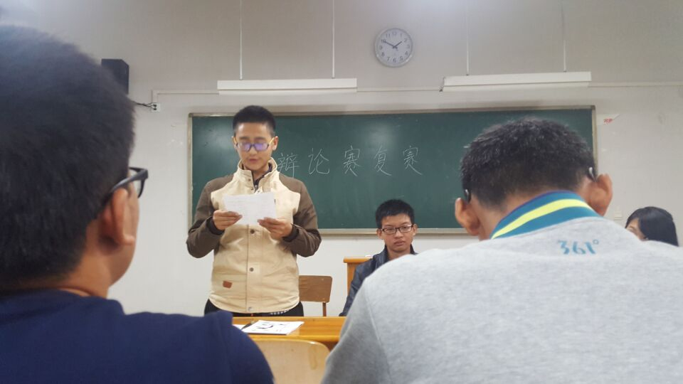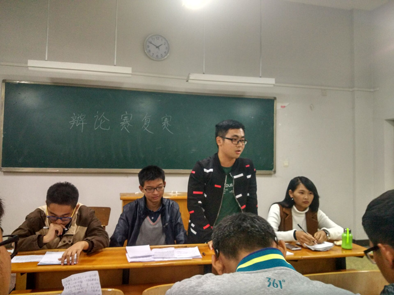 10月22日晚,我院在师范楼315教室举办了辩论赛复赛。从辩论赛海选中脱颖而出的16位选手参加了此次比赛,我院学生会副主席、往届学习部正副部长以及去年的最佳辩手担任了此次比赛的评委,我院16级50余名学生观看了比赛。