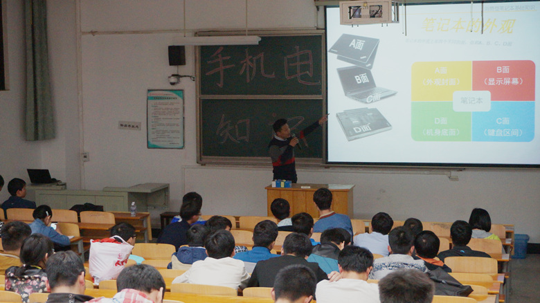 4月9日下午,电气工程与自动化学院家电维修协会联合青协在教学D楼D3阶梯教室举办了手机电脑基础知识讲座。本次讲座邀请了阿蒲商城总经理靳旭阳作为主讲人,我院家电维修协会成员及青协成员共80余人参加了座谈会。