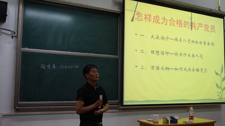 5月18日晚,我院邀请了胡明春老师在教学D楼D2教室为第18期入党积极分子培训班学员讲授党课第五讲--端正入党动机 争取早日入党,共89名入党积极分子参加了本次党课学习。