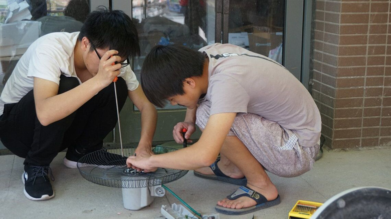 我院同学先在东方今典小区南门搭好帐篷,做维修前的准备工作。党员积极分子负责登记小区居民拿来的坏旧家电——电风扇、电饭煲等共计20件电器,家电维修小组成员们则认真地维修家电,他们先把用工具将家用电器的外壳拆卸,用万用表来检测电器内部电路,然后再用其他工具进行维修。在大家的共同努力下,一共维修好坏旧家电15件。我院同学们的志愿服务受到了小区居民的一致称赞。