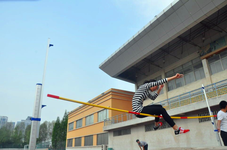 4月15日下午,我院田径队在体育馆后面的操场上进行跳高训练。此次训练是为下周的校运会所准备,有跳高比赛项目的十余名田径队队员参加了跳高专训。