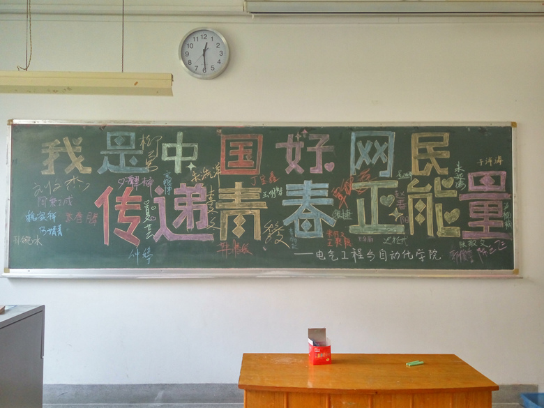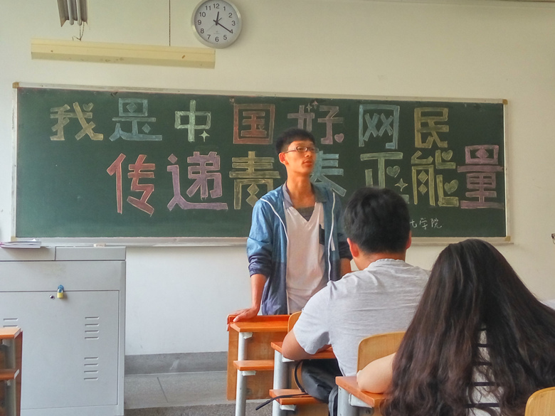 座谈会就学生组织引导大学生正确认识互联网、养成文明上网好习惯以及促进网络空间更加清朗、网络秩序更加规范等方面问题做了充分讨论。座谈会上中,我院青协主席对大学生上网发表其观点:大学生应正确认识网络,合理运用网络,树立网络诚信理念,争做有高度的安全意识、有文明的网络素养、有守法的行为习惯、有必备的防护技能的好网民。随后参会人员踊跃发言,纷纷对如何建设清朗网络文明空间和争做中国好网民发表了自己的看法。会议最后大家纷纷在黑板面前签下了自己的名字,从自身做起,从现在做起,做一个中国好网民,共同传递青春正能量。