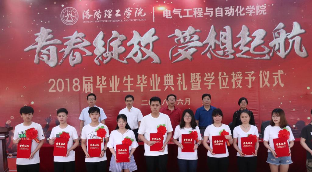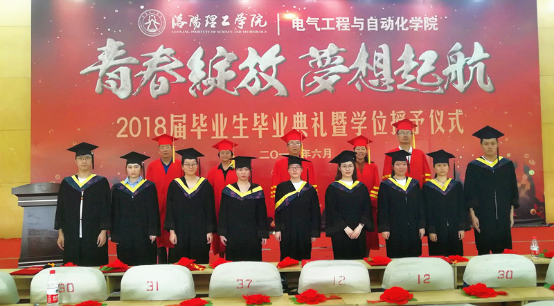 毕业典礼在庄严的国歌声中拉开帷幕。副院长张丽娟分别介绍了我院2018届本科、专科毕业生的毕业情况和本科毕业生的学位授予情况、2018届本科毕业生参加研究生考试情况、参加国家电网考试情况、专科毕业生参加专升本考试情况,戴建广书记宣读了我院荣获《河南省、洛阳理工学院2018届优秀应届毕业生》名单。