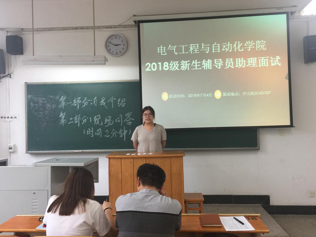 为充分做好2018级新生各项工作,确保迎新生工作有条不紊的进行,推动学院学生工作顺利开展,更好地发挥辅导员助理在新生中的引导作用,帮助新生更快更好的适应大学生活,为同学们提供锻炼能力的机会,我院于7月4日下午14:30在开元校区XD105、XD107教室顺利开展2018级辅导员助理选拔面试。学工办主任曲振峰、2018级新生辅导员周萌、乔亮亮担任此次面试评委。