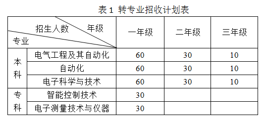 1、 电气工程与自动化学院下述专业接收转专业学生。