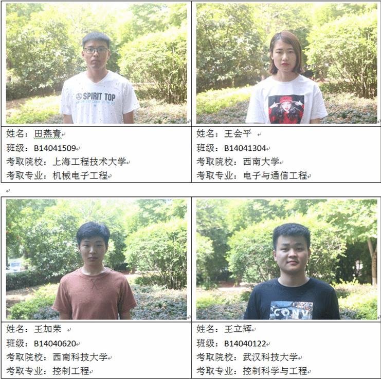 优异成绩的取得离不开学校的辛勤培养,也离不开学子们的努力钻研和辛勤付出,每一代青年都有自己的际遇和机缘,都要在自己所处的时代条件下谋划人生、创造历史,希望你们能够在更高层次的学府中深造自己,为实现伟大复兴的中国梦贡献自己的力量。同时希望2019届毕业生们能够以他们为榜样,在新的考研征程中戒骄戒躁、再创佳绩!