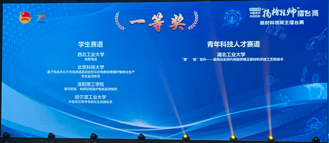 2025年度中国青年科技创新“揭榜挂帅”擂台赛“新材料领域”终审擂台赛于10月10日至12日在福建省龙岩市举办。本年度“新材料领域”主擂台赛共发布14个榜题,设学生赛道和青年科技人才赛道。我院1支学生参赛团队表现特别优异,荣获一等奖1项,实现了学校在“挑战杯”国赛专项赛道的新突破。