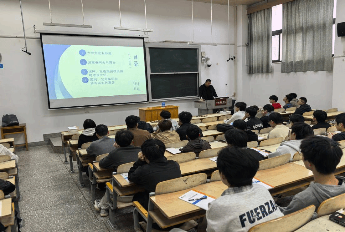 2025年10月16日,以“国家电网校园考情分析”为主题的宣讲会在洛阳理工学院顺利举行。本次宣讲面向电力电气工程学院大一、大二、大三全体学生,旨在帮助电气学子们提前了解国家电网及各发电集团的招聘政策、考试内容与备考路径,为未来职业发展打下坚实基础。