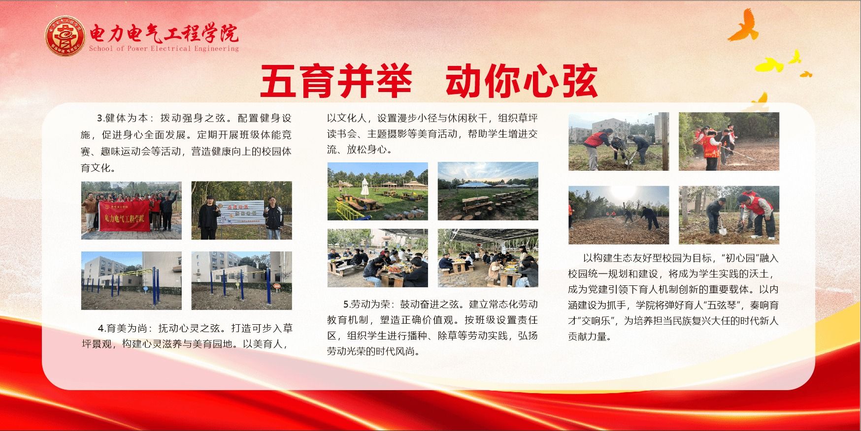 “不忘育人初心,牢记树人使命”。电力电气工程学院党委将不断丰富“动你心弦”育人内涵,用心弹好育人“五弦琴”,合力奏响育才“交响乐”,为培养担当民族复兴大任的时代新人贡献力量。