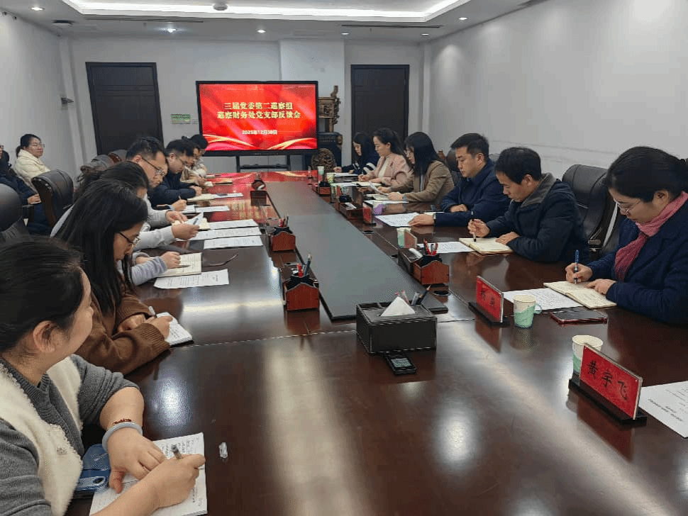 2025年12月30日,三届党委第二巡察组巡察财务处党支部反馈会在王城校区办公楼216会议室召开。组织部副部长(正处级)徐光秀,校纪委副书记水付新,校党委巡察工作领导小组成员、第二巡察组组长郑林林,巡察组副组长杨燕及全体成员出席会议。财务处党支部全体人员参加会议。会议由财务处党支部书记、处长杨明伟主持。