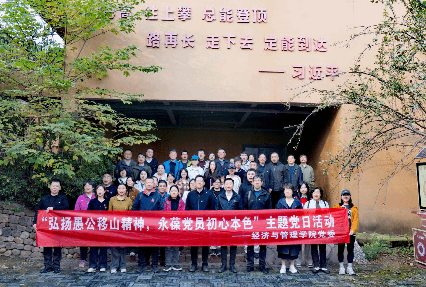 为深入学习贯彻习近平新时代中国特色社会主义思想,学习贯彻党的二十届四中全会精神,筑牢党员教师理想信念根基,10月30日,经济与管理学院党委组织全体党员教师赴济源市愚公移山红色教育基地,开展“弘扬愚公移山精神、永葆党员初心本色”主题党日活动,在实地感悟中汲取精神养分,在思想碰撞中明晰使命担当。