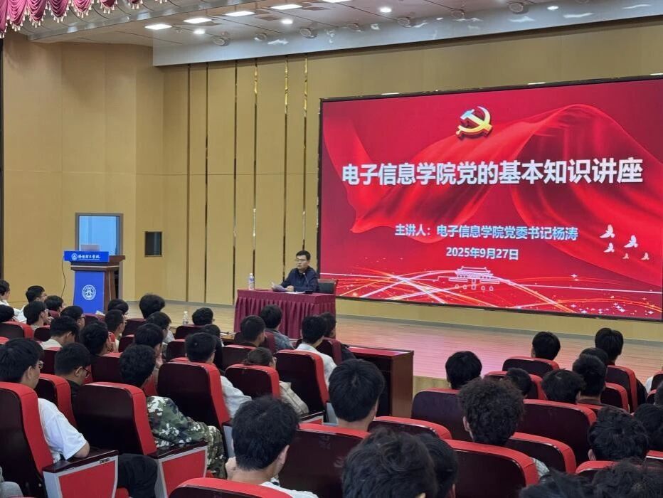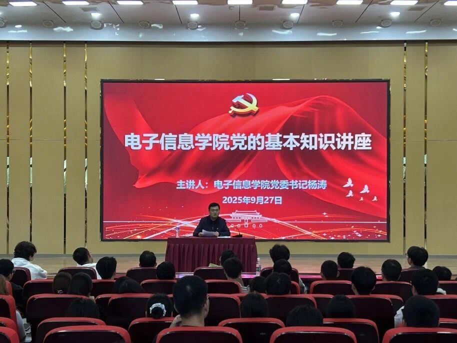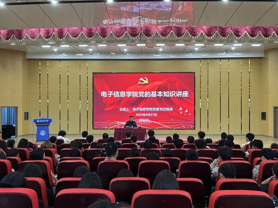 9月27日下午,电子信息学院党委书记杨涛在报告厅为全体25级新生带来了一场内容丰富、意义深刻的党的基本知识启蒙讲座。