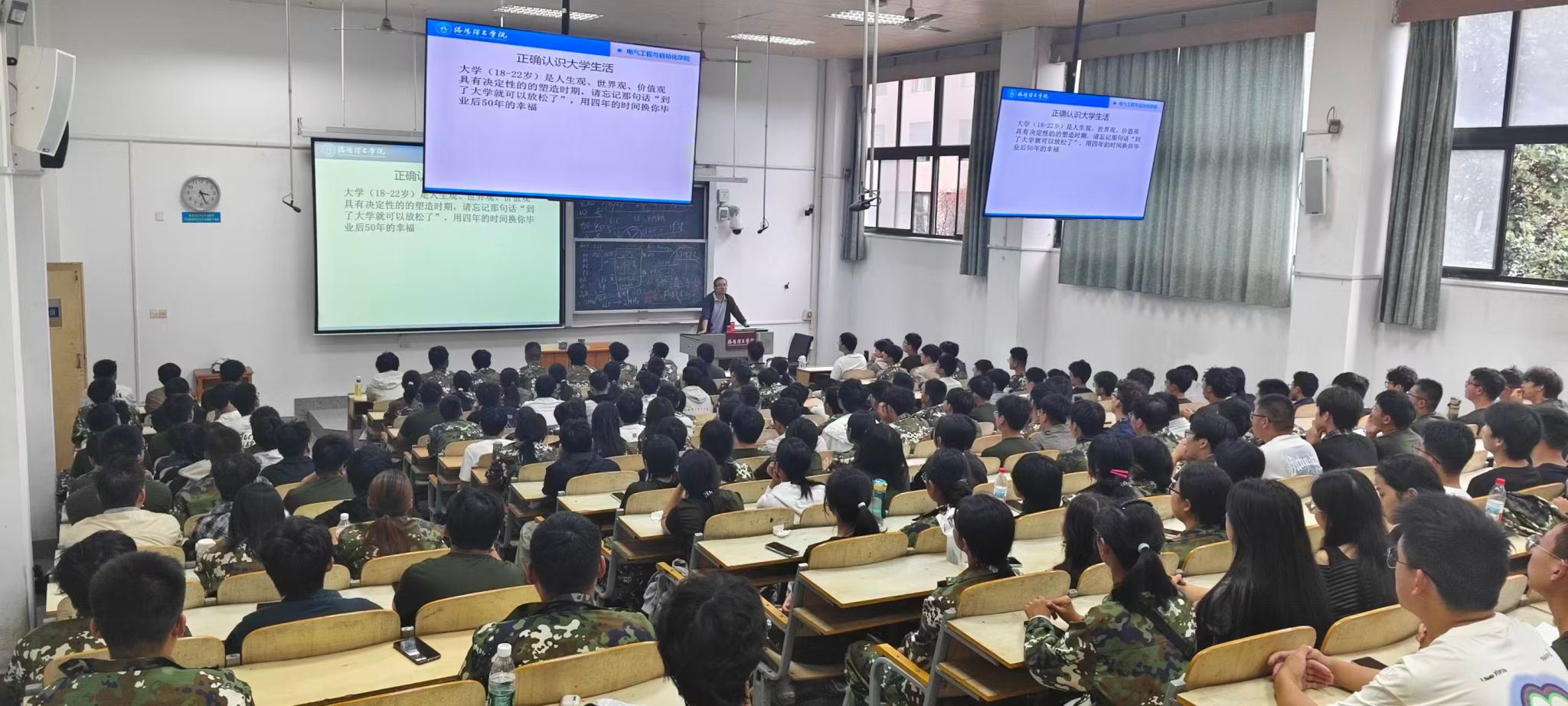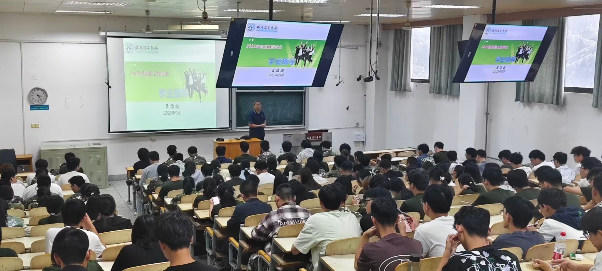 为帮助 2025 级新生快速适应大学生活、明确专业方向,9 月17 日下午,电子信息学院在开元校区教学楼开展新生专业导论讲座。电子科学系主任郭超、通信工程系主任吕治国分别主讲,电子信息学院全体 2025 级新生到场聆听。
