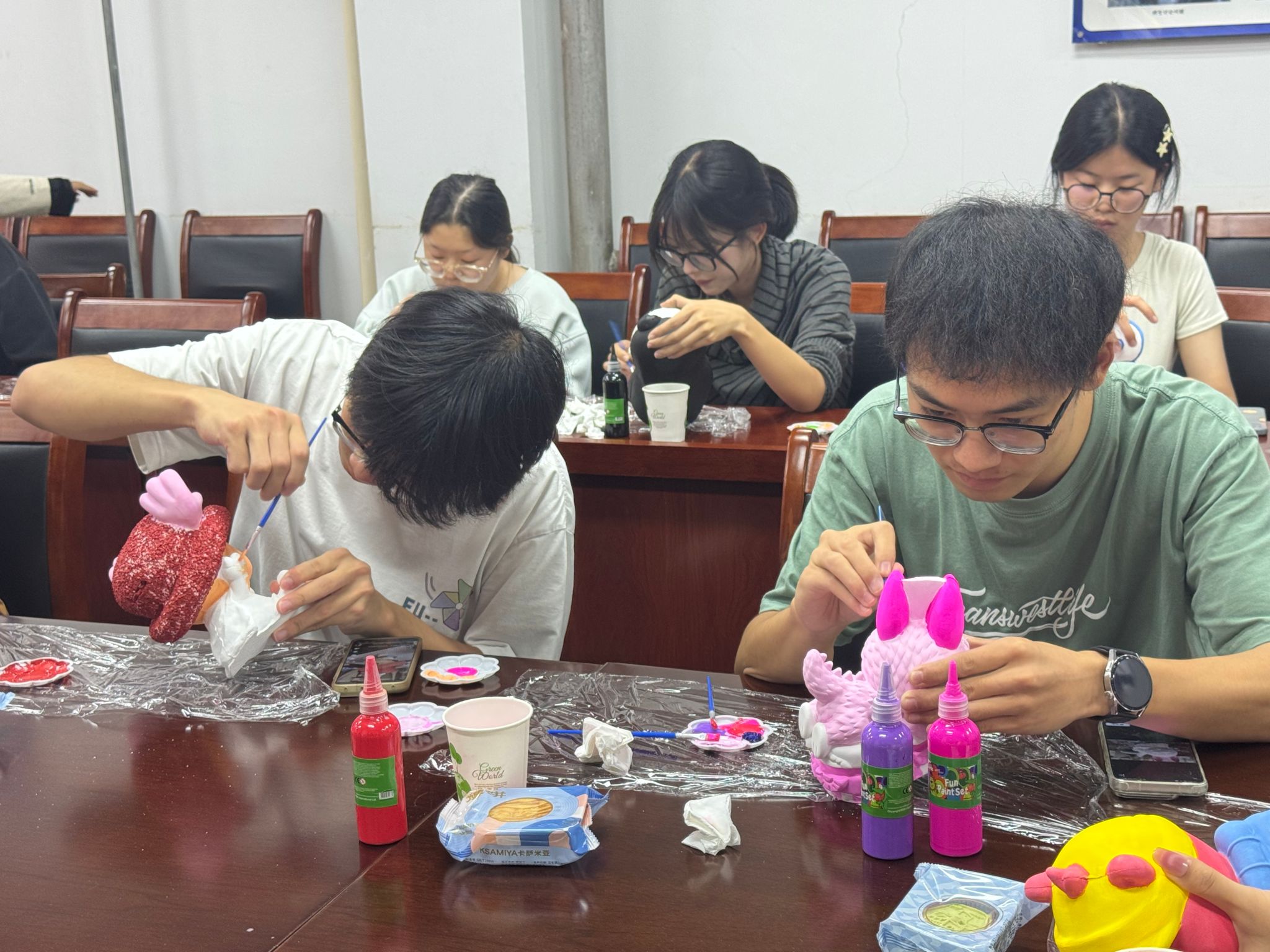 秋风送爽,桂香氤氲。为使假期留校学生度过一个温馨、祥和的中秋佳节,10月6日下午16:00,电子信息学院在实验D楼二楼会议室精心组织了一场石膏娃娃彩绘活动。电子信息学院副院长董红政、学工办副主任赵文婷和辅导员查清扬与国庆期间留校的同学们欢聚一堂,共叙情谊。