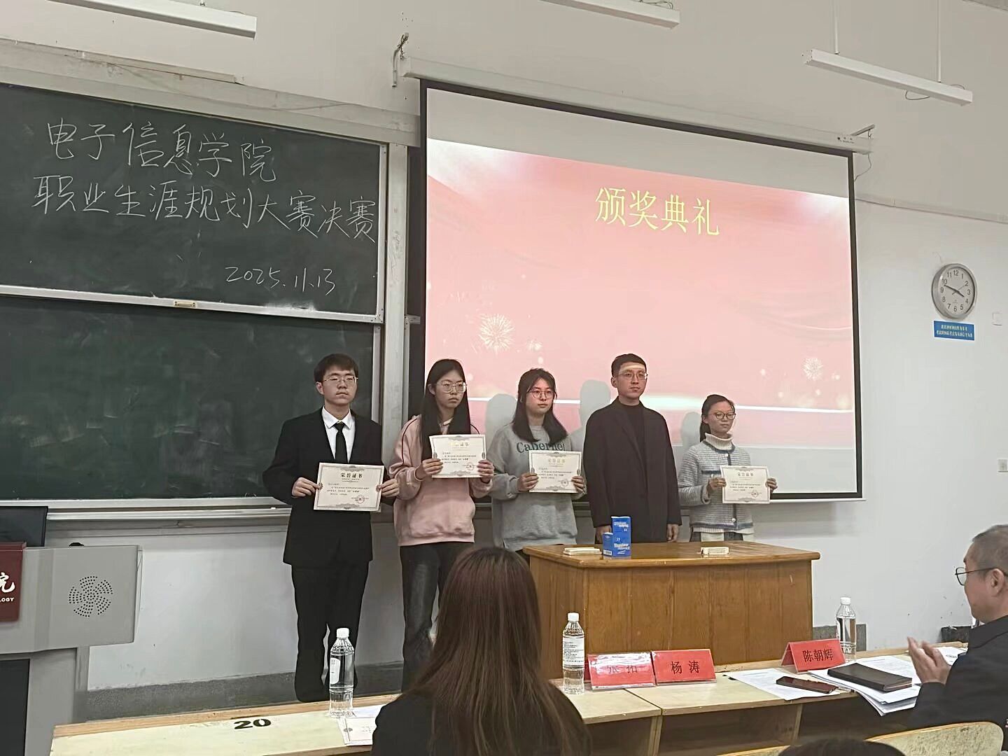 2025年11月13日下午,电子信息学院于开元校区XC2举办了第三届全国大学生职业生涯规划大赛院级决赛。此次大赛由学院党委副书记陈朝辉、就业指导办公室副主任张拓、辅导员崔云鸽以及学院就业部部长郭思仪担任大赛评委。