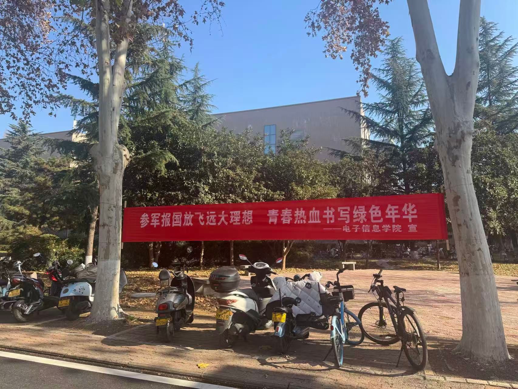 为深入贯彻落实国家征兵工作部署,激发青年学生参军报国的热情,为国防和军队建设输送优质兵源,电子信息学院立足学院实际,创新宣传形式、拓宽动员渠道,通过开展征兵团日活动、主题班会、退役学生宣讲、悬挂宣传横幅等一系列扎实有效的举措,全方位、多角度推进征兵工作,在校园内营造了“参军报国、青春无悔”的浓厚氛围。
