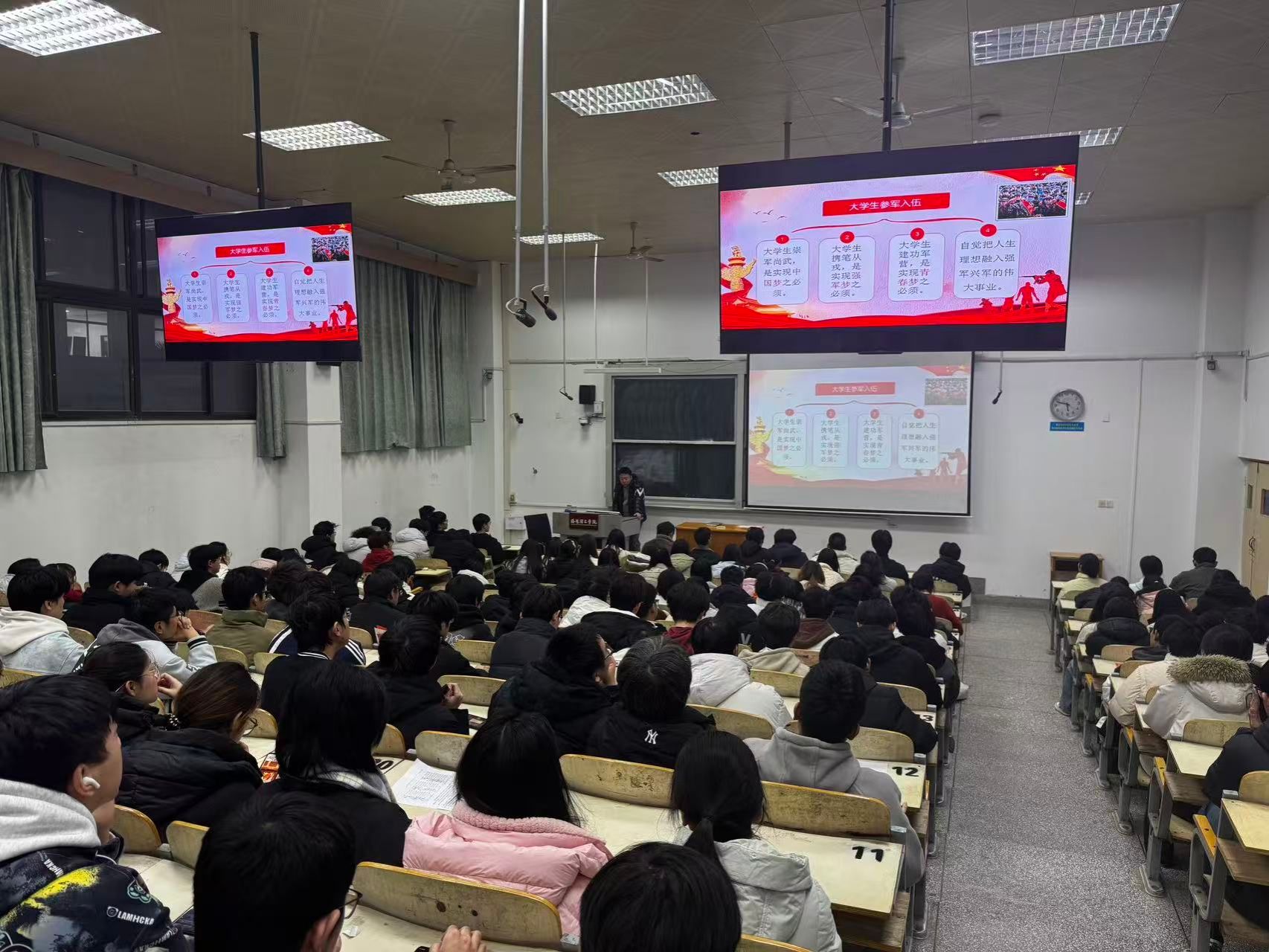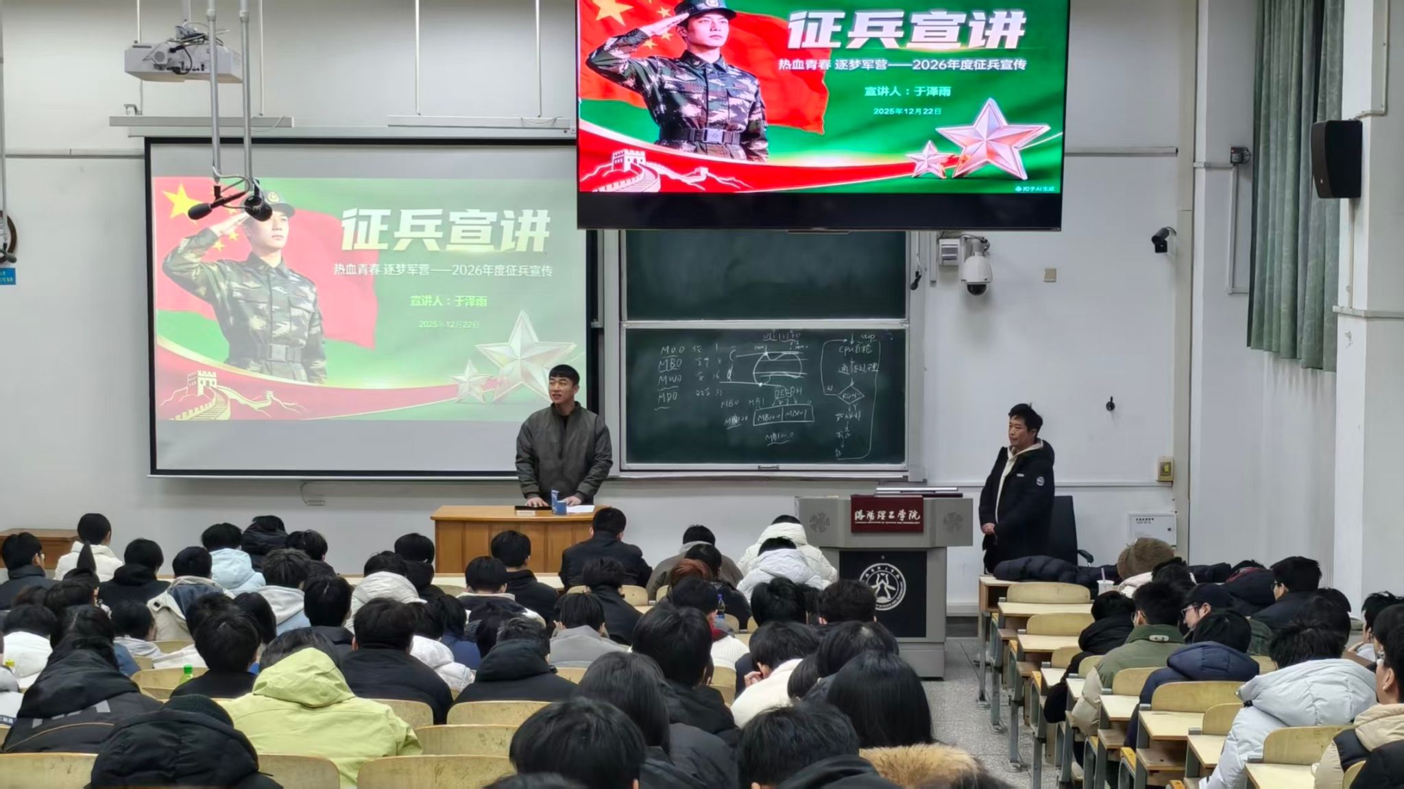 学院充分发挥共青团组织的先锋引领作用,以团支部为单位广泛开展征兵团日活动。活动中,团员青年主动化身宣讲员,结合自身对征兵政策的理解、对军营生活的向往,通过主题发言、互动交流、PPT 展示等多种形式,从国防责任、个人成长、政策福利等多个维度,向同学们讲述参军报国的重大意义,分享身边退役学长的励志故事。团员们以青春之声传递热血担当,用身边人带动身边人,让“携笔从戎、报效国家”的信念深入人心,有效激发了同学们的参军热情,形成了 “团员带头、全员参与” 的良好动员氛围。